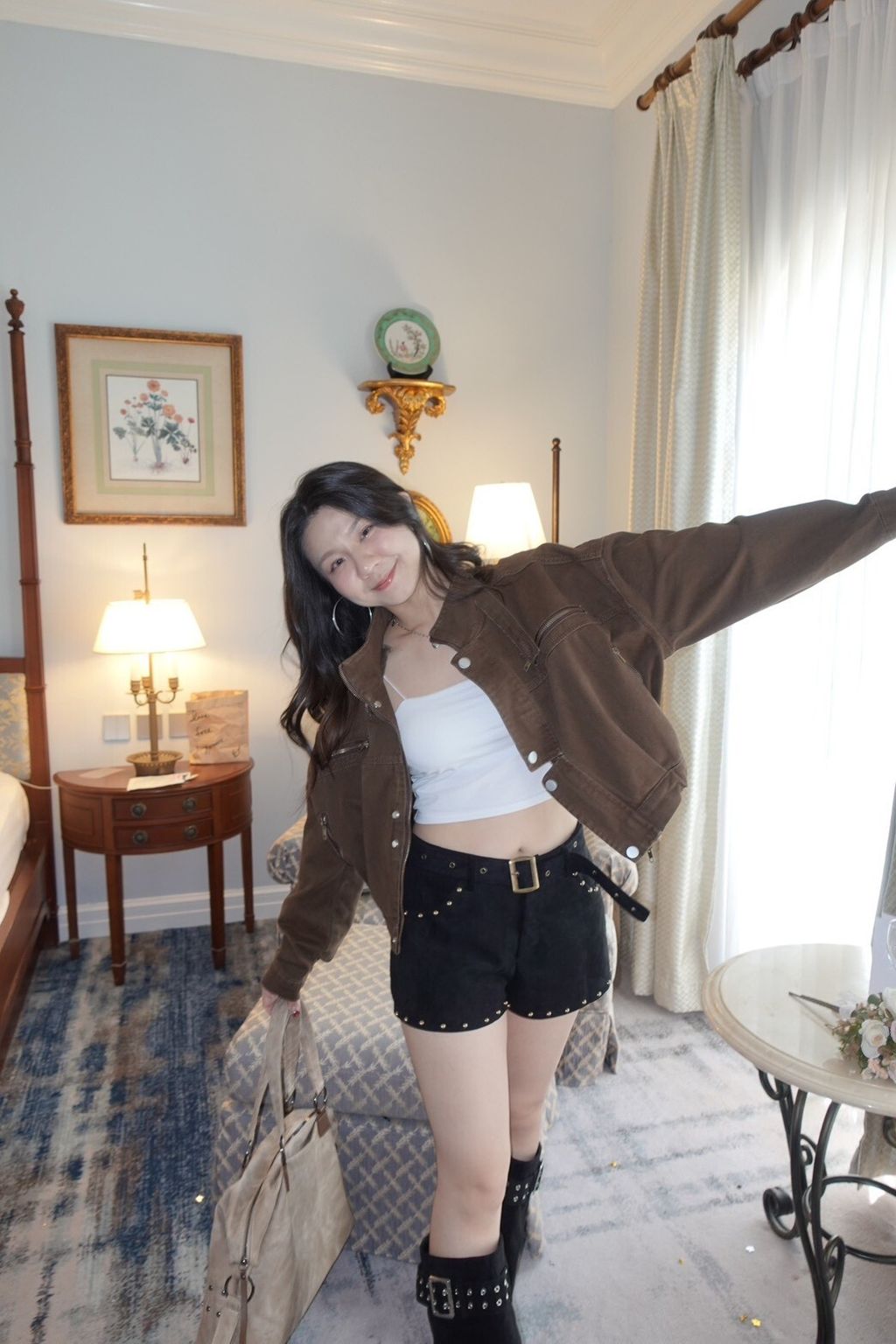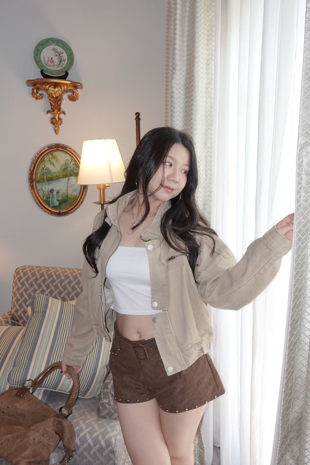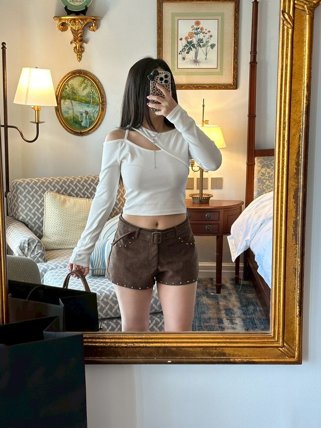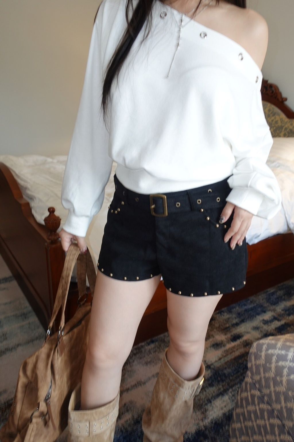 P.com (現貨♡)【廣州】曼哈頓日落 麂皮鉚釘短褲(贈皮帶) 2colors S-L