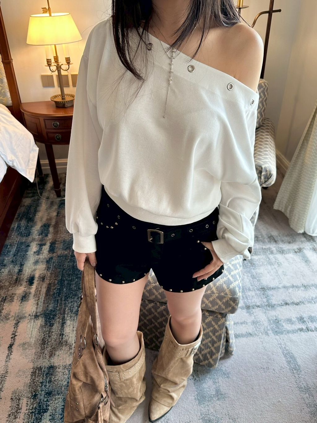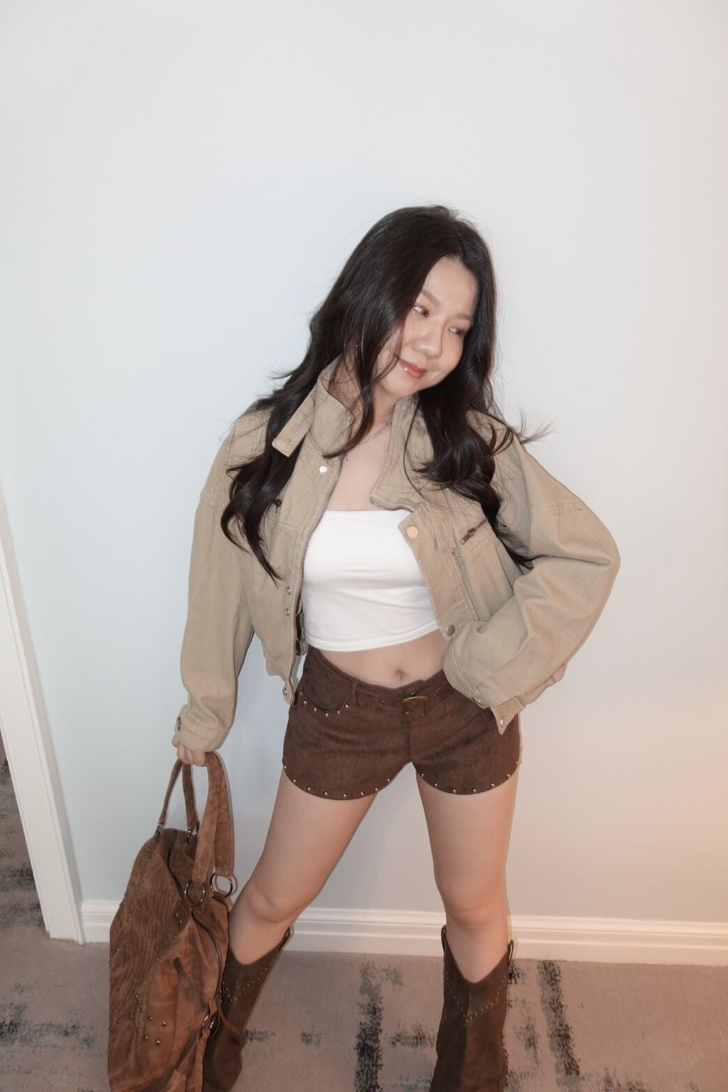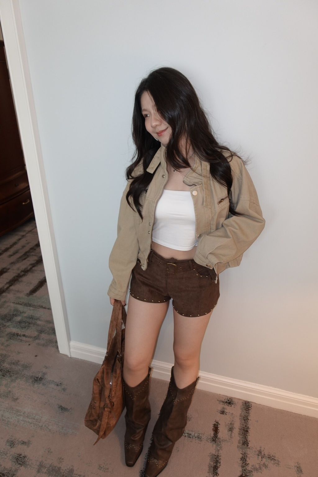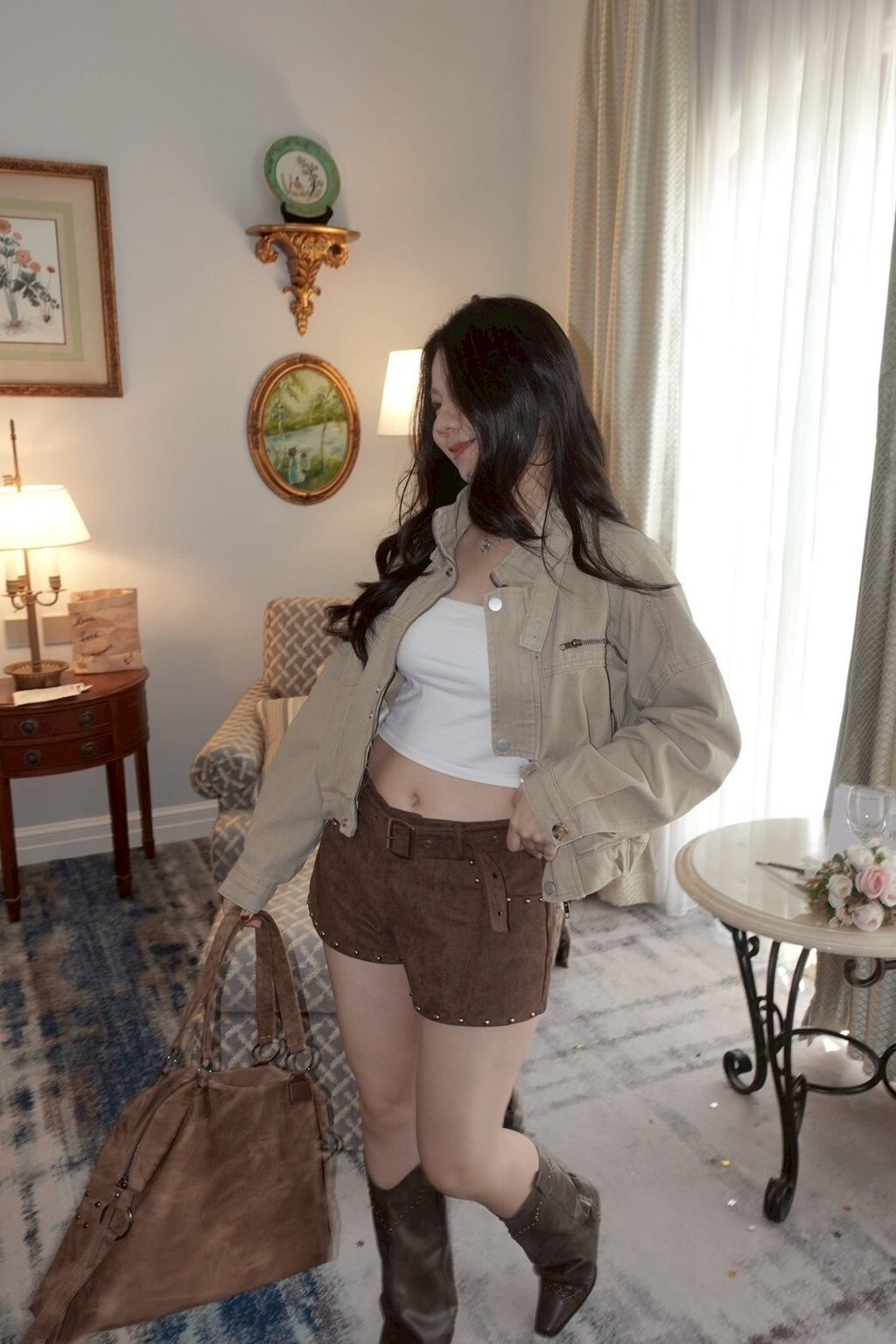 P.com (現貨♡)【廣州】曼哈頓日落 麂皮鉚釘短褲(贈皮帶) 2colors S-L