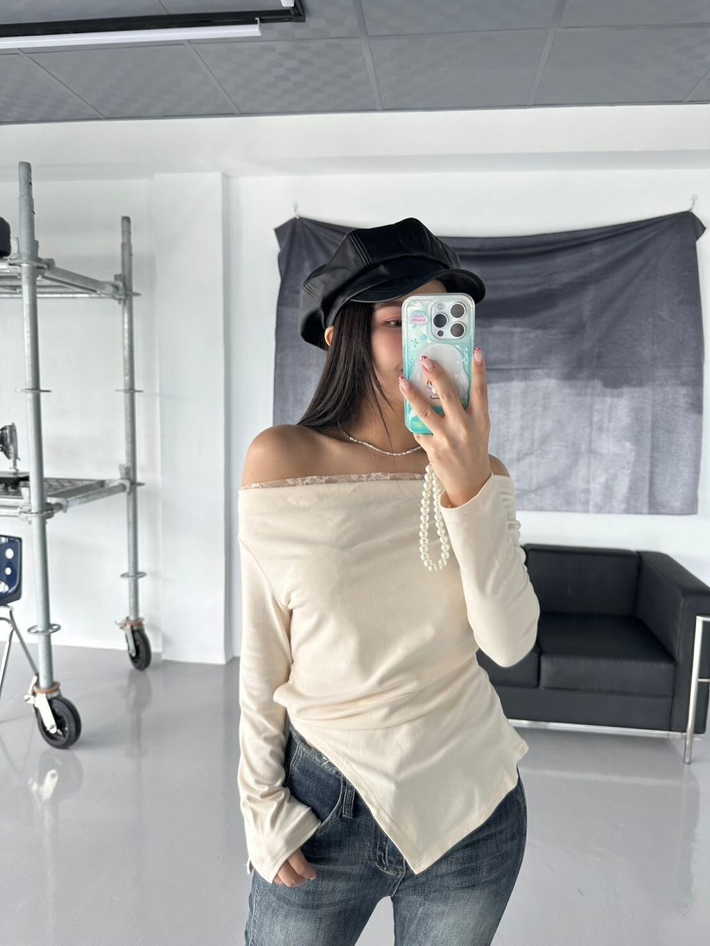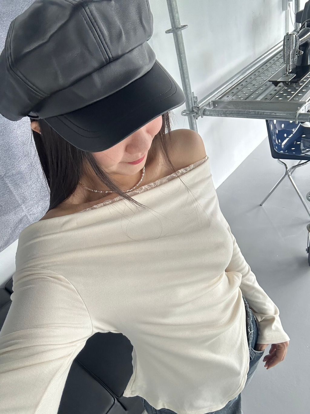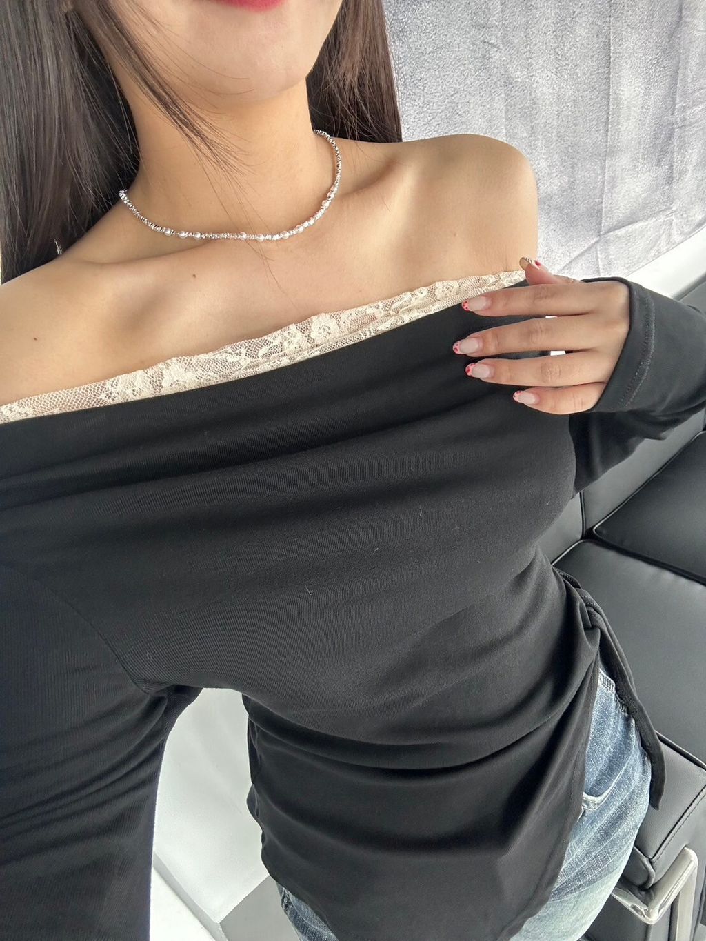 P.com (現貨♡) 莫代爾拼接蕾絲一字領上衣 3colors