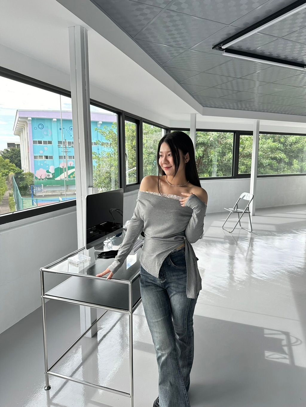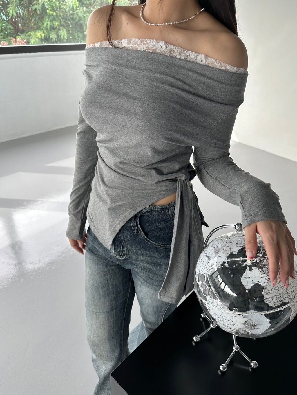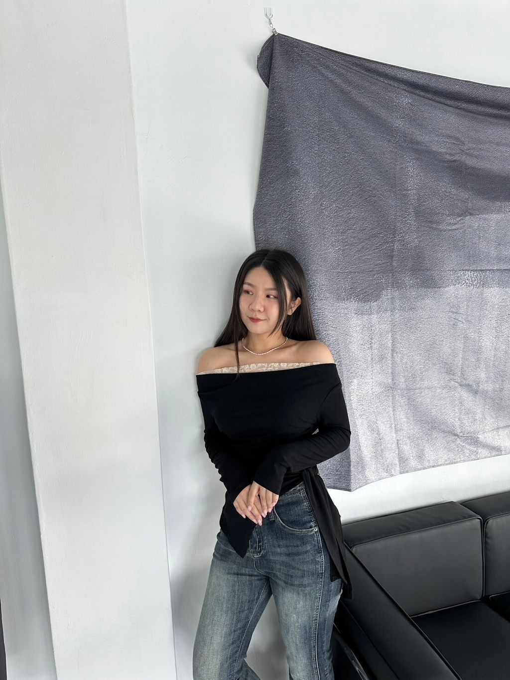 P.com (現貨♡) 莫代爾拼接蕾絲一字領上衣 3colors