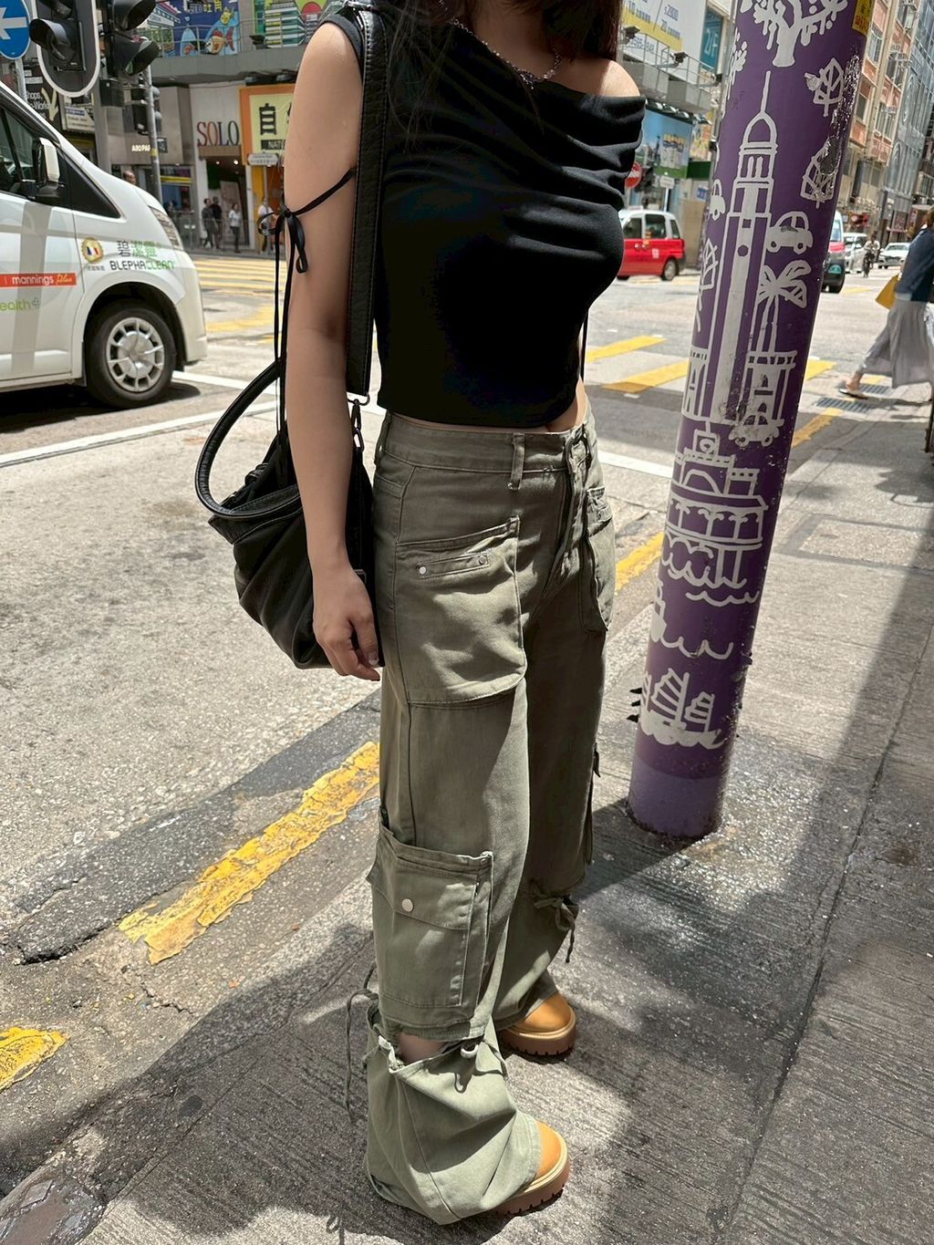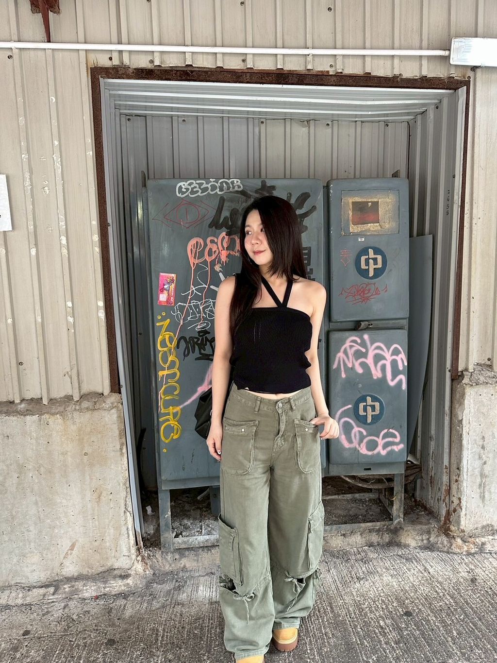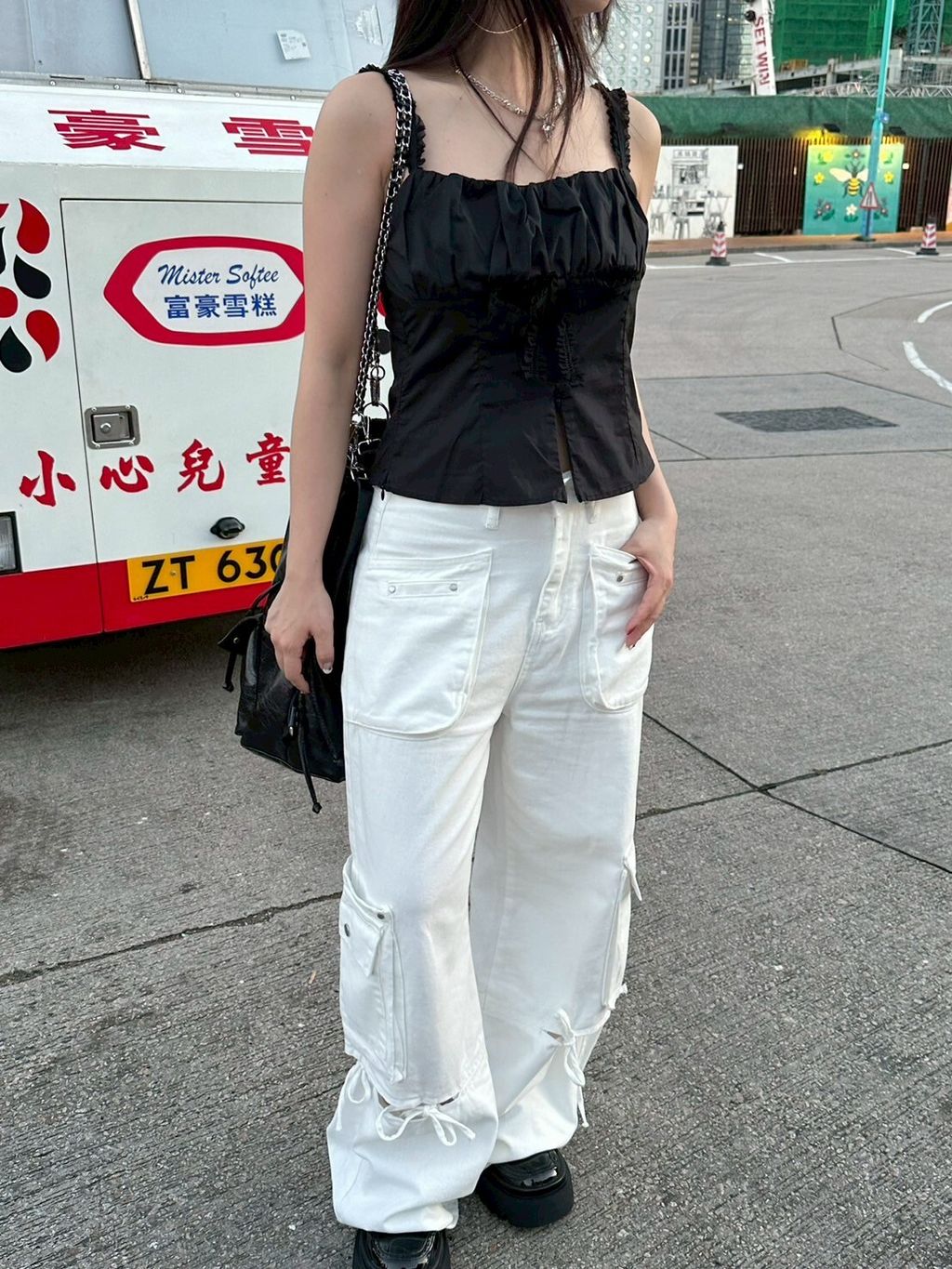 P.com (現貨♡) 小資款 甜酷baby! 蝴蝶結鏤空綁帶工裝褲 3colors
