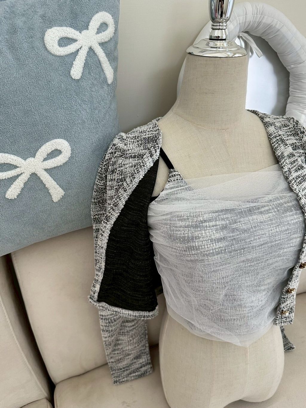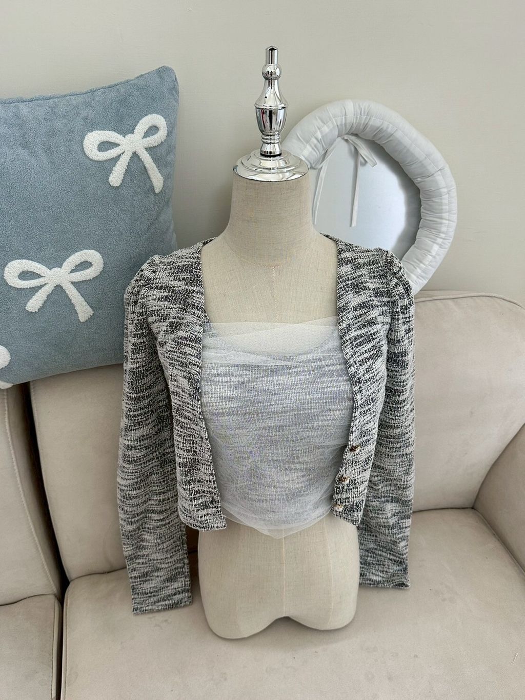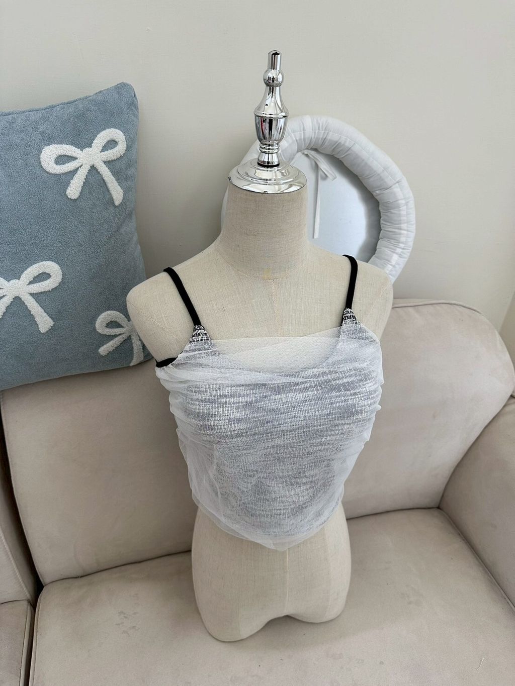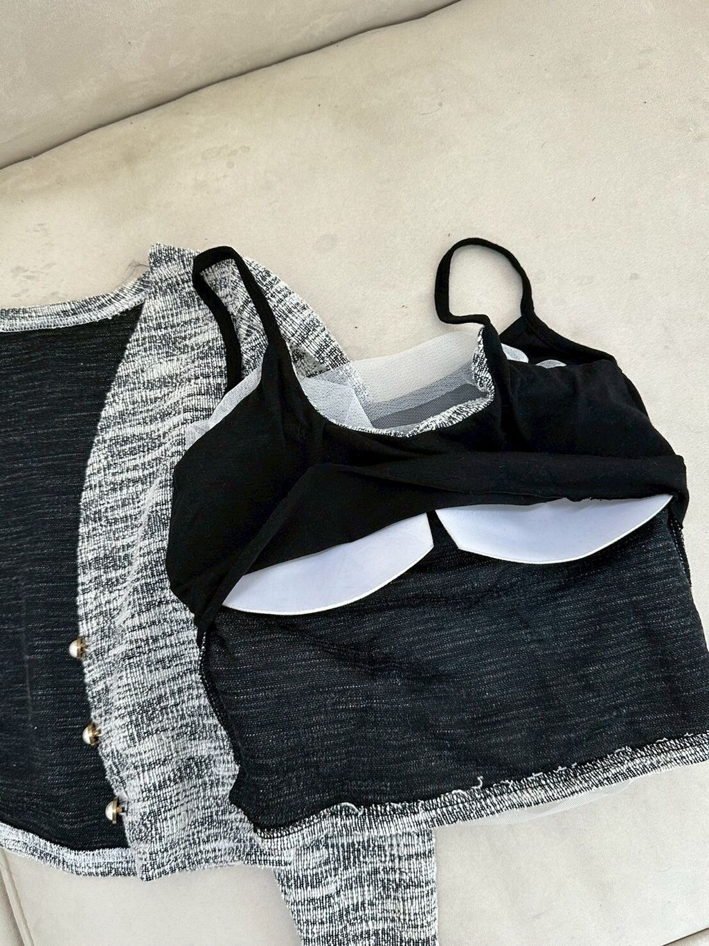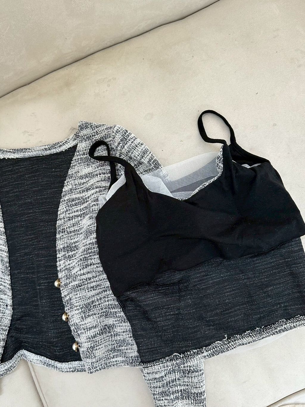 P.com Summer Sale ✨135 小香風珍珠扣罩衫+網紗bra top set