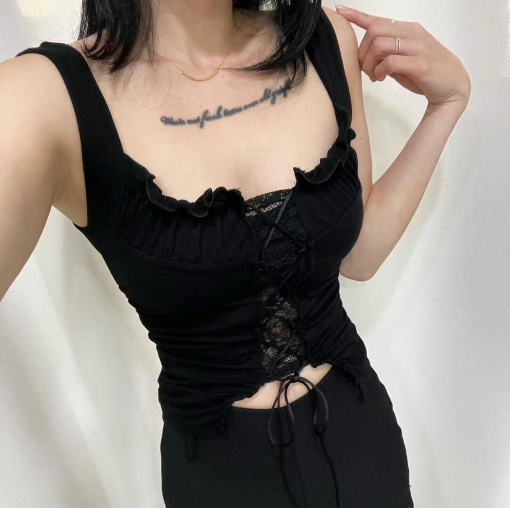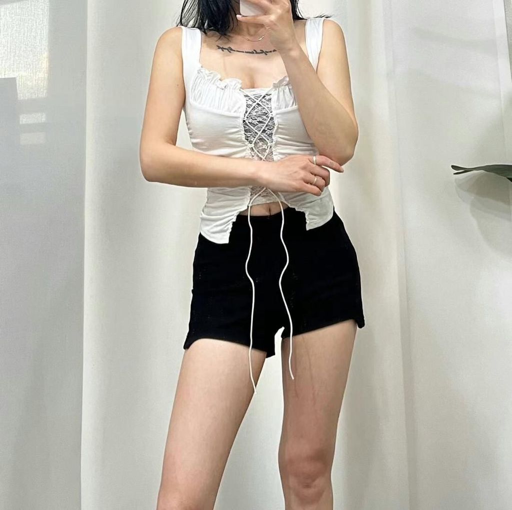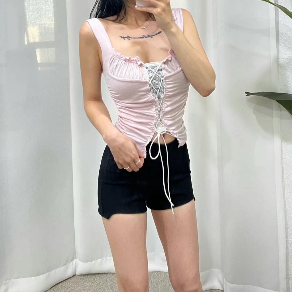 P.com Summer Sale ✨148 莫代爾棉質綁帶蕾絲設計上衣 3colors
